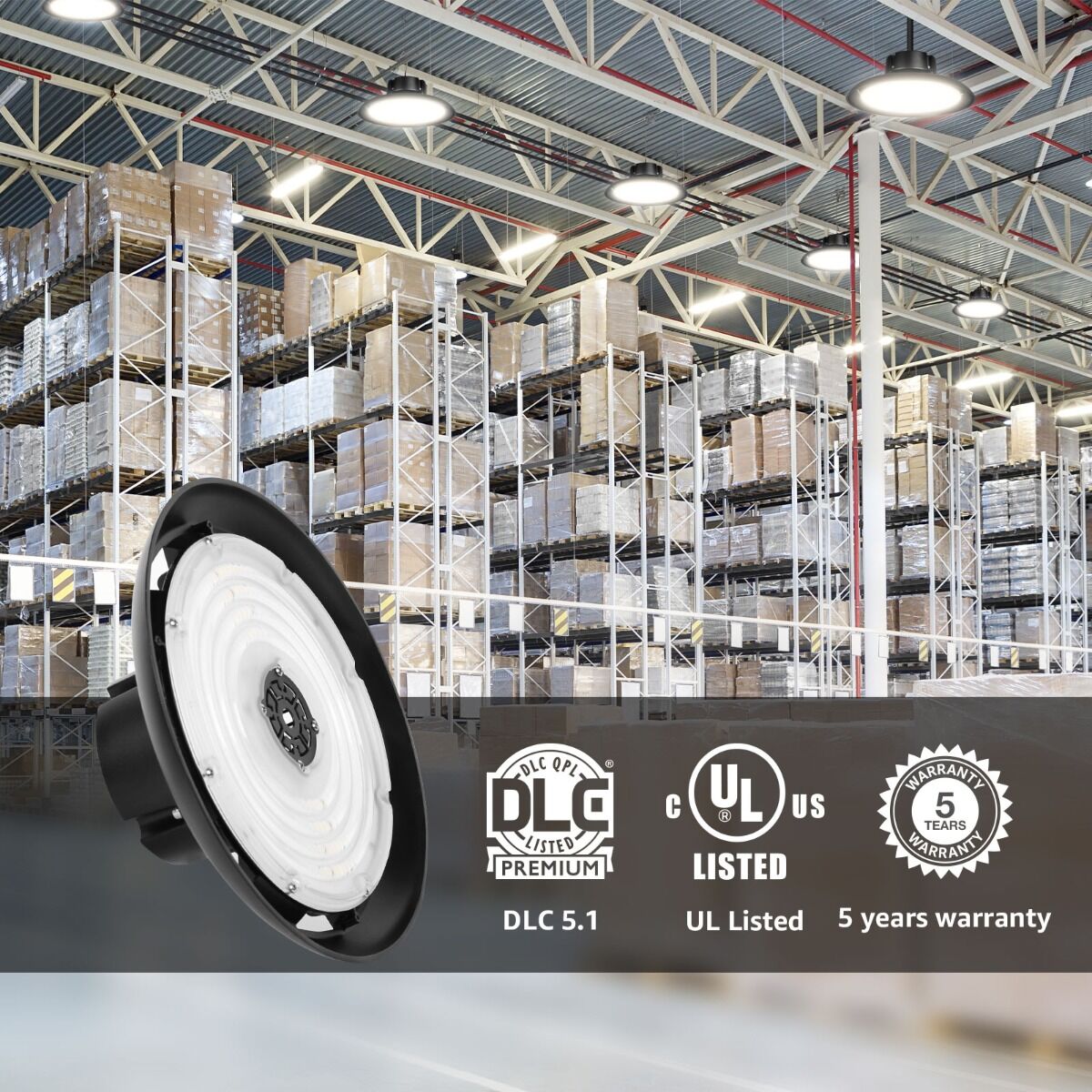 100W UFO LED High Bay Lights, Shop 14,500lm 5000K Dimmable Bright LED Shop Lights for Workshop, Factory & Garage. Get DLC Rebates Now. 5 Years Warranty