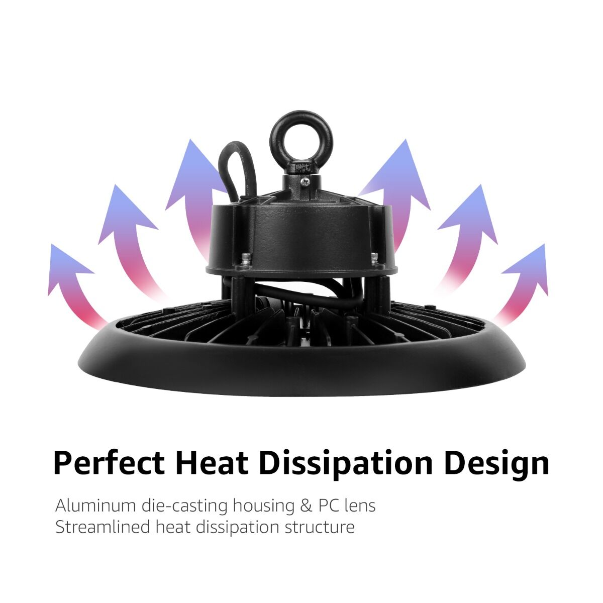 - Our standard aluminum die-cast housing is used for all of Lepro’s 100W LED UFO high bay lights, creating maximum durability and an excellent heat dissipation effect.