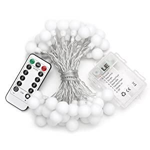 Lepro 16.4ft Battery Powered LED Globe String Lights Ball Fairy Lights with Remote and Timer, 50 LED Lights, 8 Modes, Indoor Outdoor Decorative Hanging Lights for Bedroom, Kids Room, Dorm, Camping