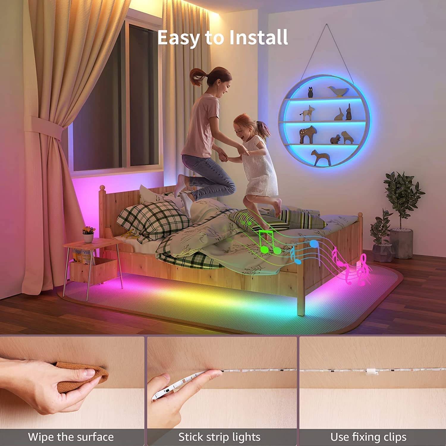Widely Used: Lepro 16.4ft music sync MagicColor LED light strips are a wonderful home decoration and a dorm room essential for girls or boys. Decorate your living room, bedroom, dining room, balcony, camper, back of TV, desk, gaming room, stairs and more in colored lights. They are especially great for holidays and events such as Christmas, Halloween, New Year’s Eve parties, and more.