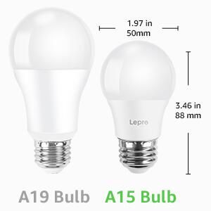- Our A15 E26 led bulb features a white light of 5000K with 450 lumen output, equivalent to 40-Watt incandescent bulb, perfect replacement of traditional refrigerator light bulbs.