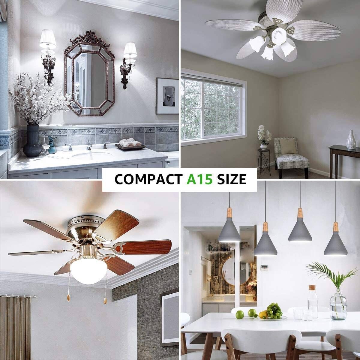 - Compact A15 size, widely used in ceiling fan light fixtures and other household appliances.