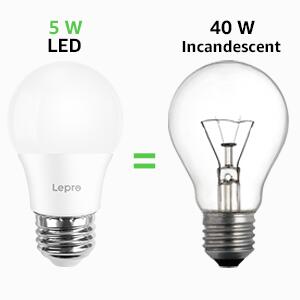 Energy-Saving LED Technology: The 5-watt LED bulb provides 450 lumens of white light, equivalent to 40-watt incandescent bulbs, resulting in an 87% energy savings.