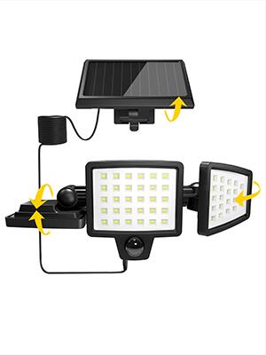 2-Pack Lepro Solar Motion Sensor Flood Lights with Separate Solar Panel - 1000LM, 3 Adjustable Heads, 270° Wide Angle, 72 LED, IP65 Waterproof, Ideal for Porch, Yard, Garage, Pathway