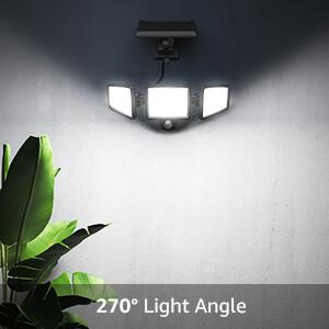 270° wide lighting: The Lepro solar flood light features three adjustable light panels with rotatable joints, providing a wide illumination angle of 270°. This expansive coverage ensures thorough lighting in your chosen area, making it an ideal solution for comprehensive outdoor lighting.
