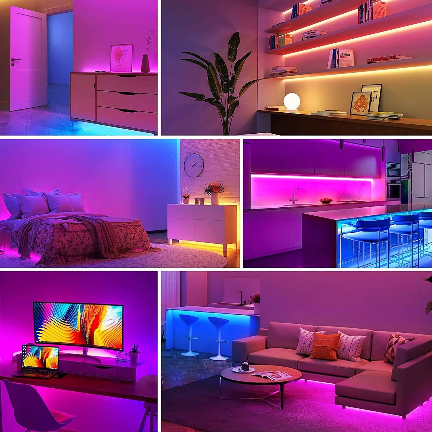 Multi-Use LED Strip Lights: Ideal for various settings, these 30ft RGB LED strip lights enhance the ambiance in your living room, bedroom, dining area, kitchen, or even under desks and cabinets. They’re also perfect for festive decorations, like Christmas trees, and suitable for holiday celebrations such as Christmas and Halloween.