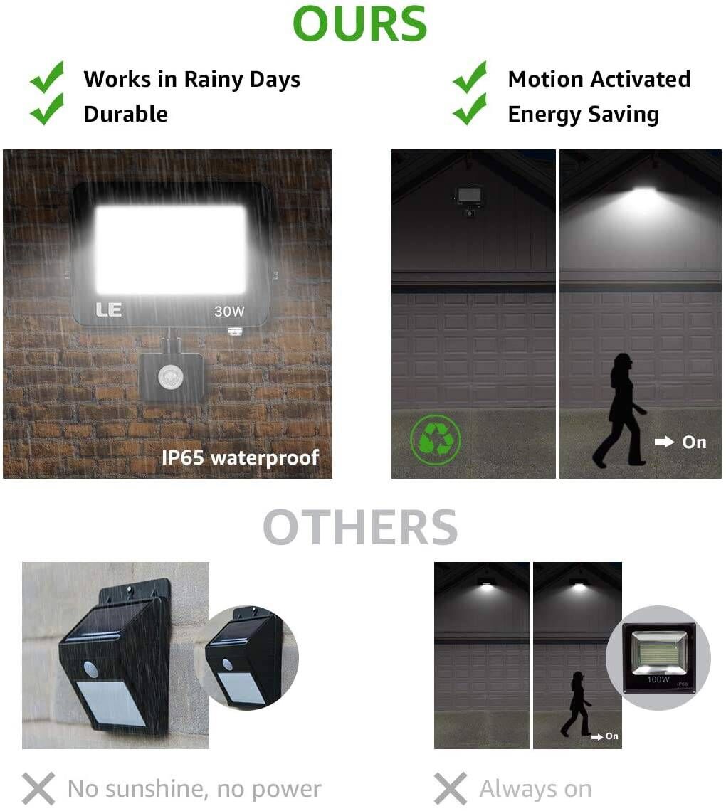 LE 30W LED Security Lights Motion Sensor Light Outdoor, Waterproof Flood Light with Photocell, 2800lm Daylight White 5000K, Eave/Wall Mounted Floodlight for Backyard, Driveway, Garage, Yard