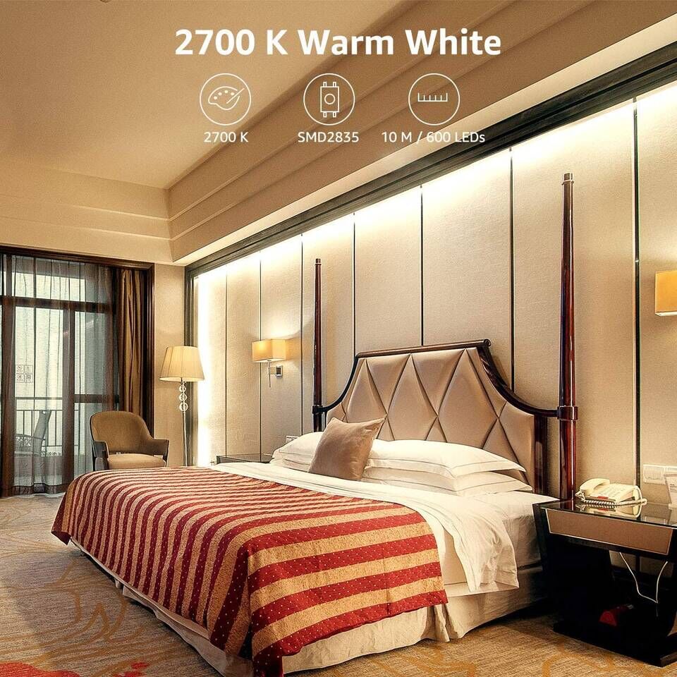 Upgraded Tape: This 32.8ft warm white LED strip light is made of 3M tape. Extra strong so it won’t loosen or fall off easily. Please ensure that the installation surface is clean and dry before use, which enhances viscosity.