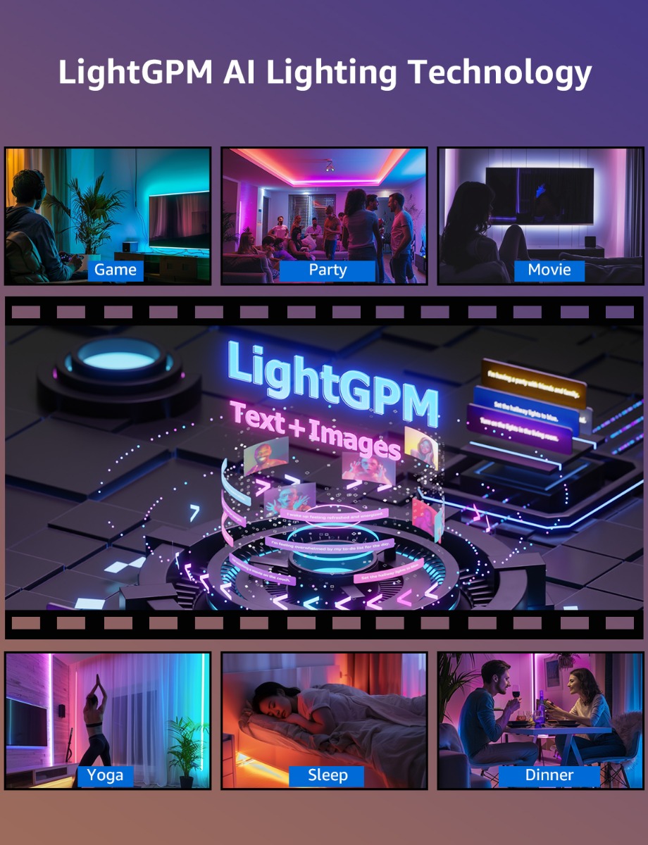 LightGPM AI Lighting Technology: AI generated lighting that responds to the user's emotions, commands, and the specific scenes required, offering a seamless and personalized solution for home lighting.
