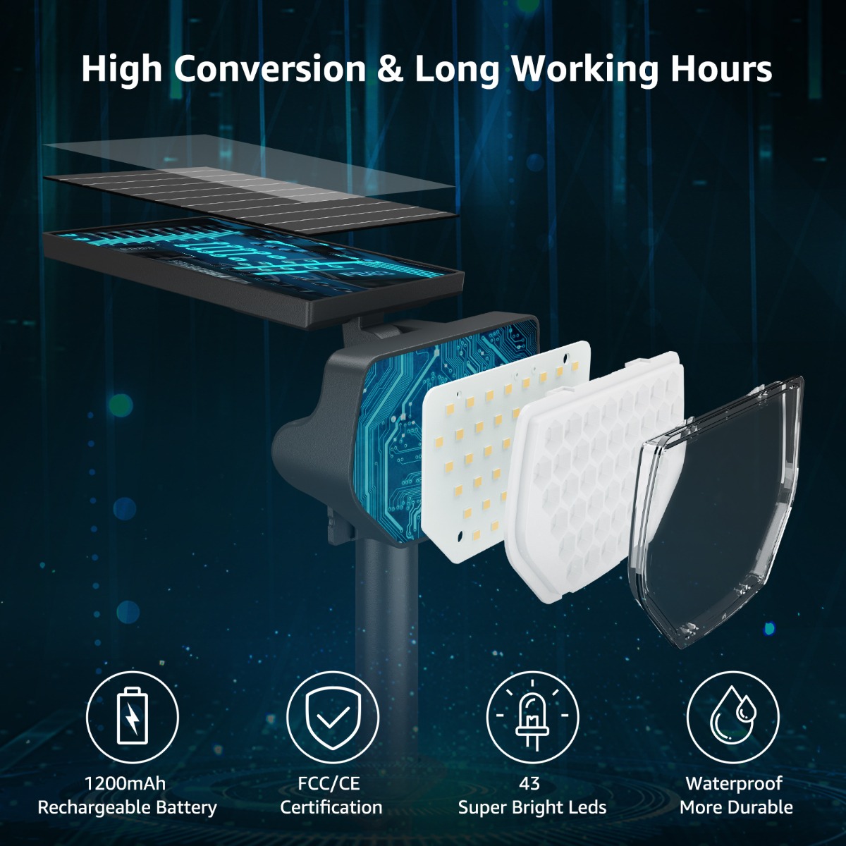 Upgraded Solar Panel: adopting the latest upgraded 1200mah solar panel, with a higher sunlight absorption rate and more durable lighting.