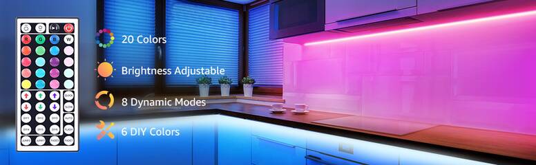 All in One Kit: This LED Light strip kit includes 1pcs 20ft/6m non-waterproof RGB strip, 1pc 44 key IR remote control, and 1pc 24V power adapter (US Plug). You do not need to spend extra time and money buying other accessories.
