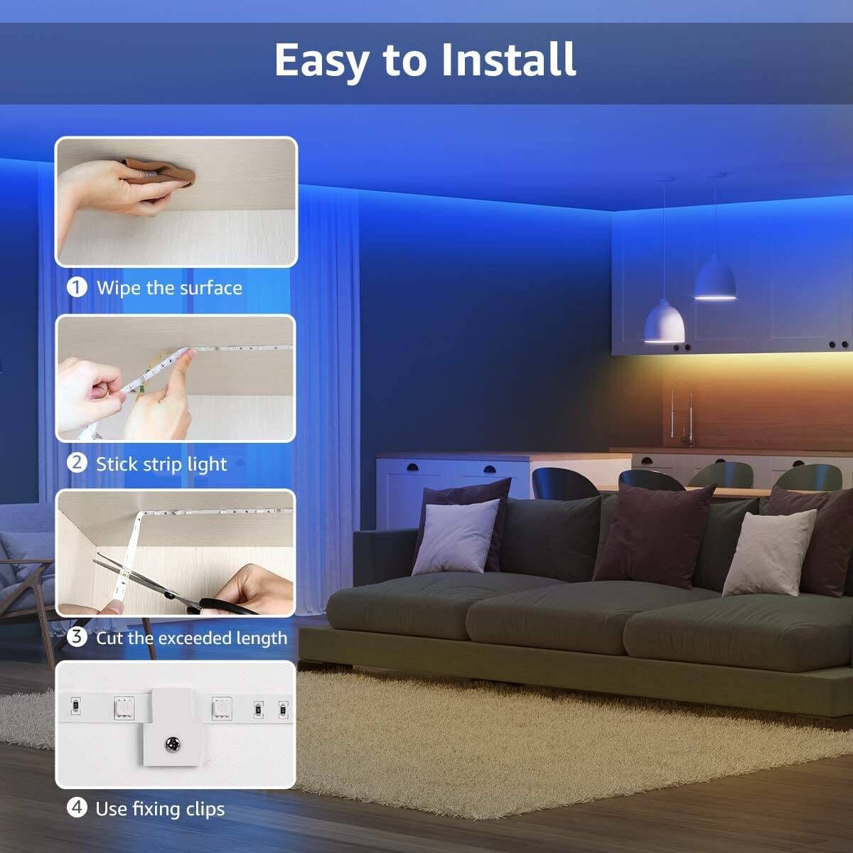 Mounting Brackets/Fixing Clips: We use professional and strong 3M adhesive and now add extra mounting brackets & fixing clips in the LED strip lights kit. Never worry about the strip's falling down.