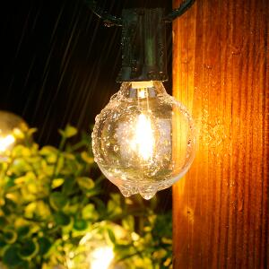 Shatterproof Outdoor Globe String Lights That Still Looks Classy. The acrylic globes are as clear as glass. And the impact-resistant decorative filament LED bulbs won't break when dropped, making them safe around children and pets.