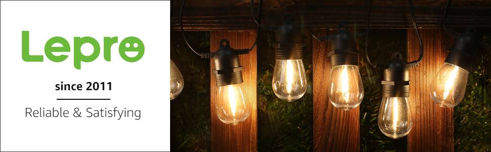 Lepro S14 Outdoor String Lights, 50ft Hanging Patio Lights with 15 Shatterproof LED Edison Bulbs, Waterproof Commercial Bistro Lights, Backyard String Lighting for Deck, Pergola, Porch, Garden, Gazebo