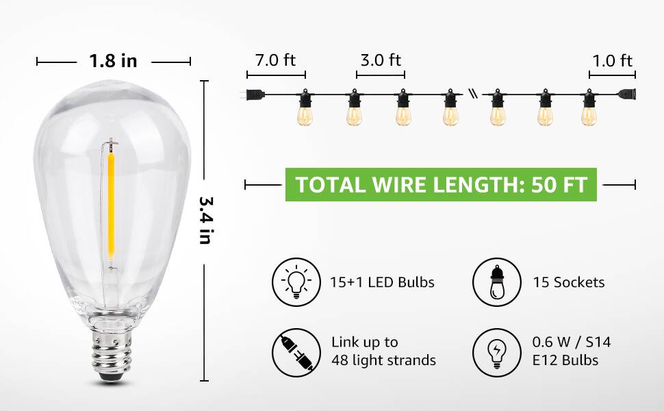 Durable & Commercial Grade. Life expectancy of this commercial Edison string lights is over 15,000 hours. Premium cord made of 100% copper (no alloy), which provides exceptional thermal and electrical support to light strand.