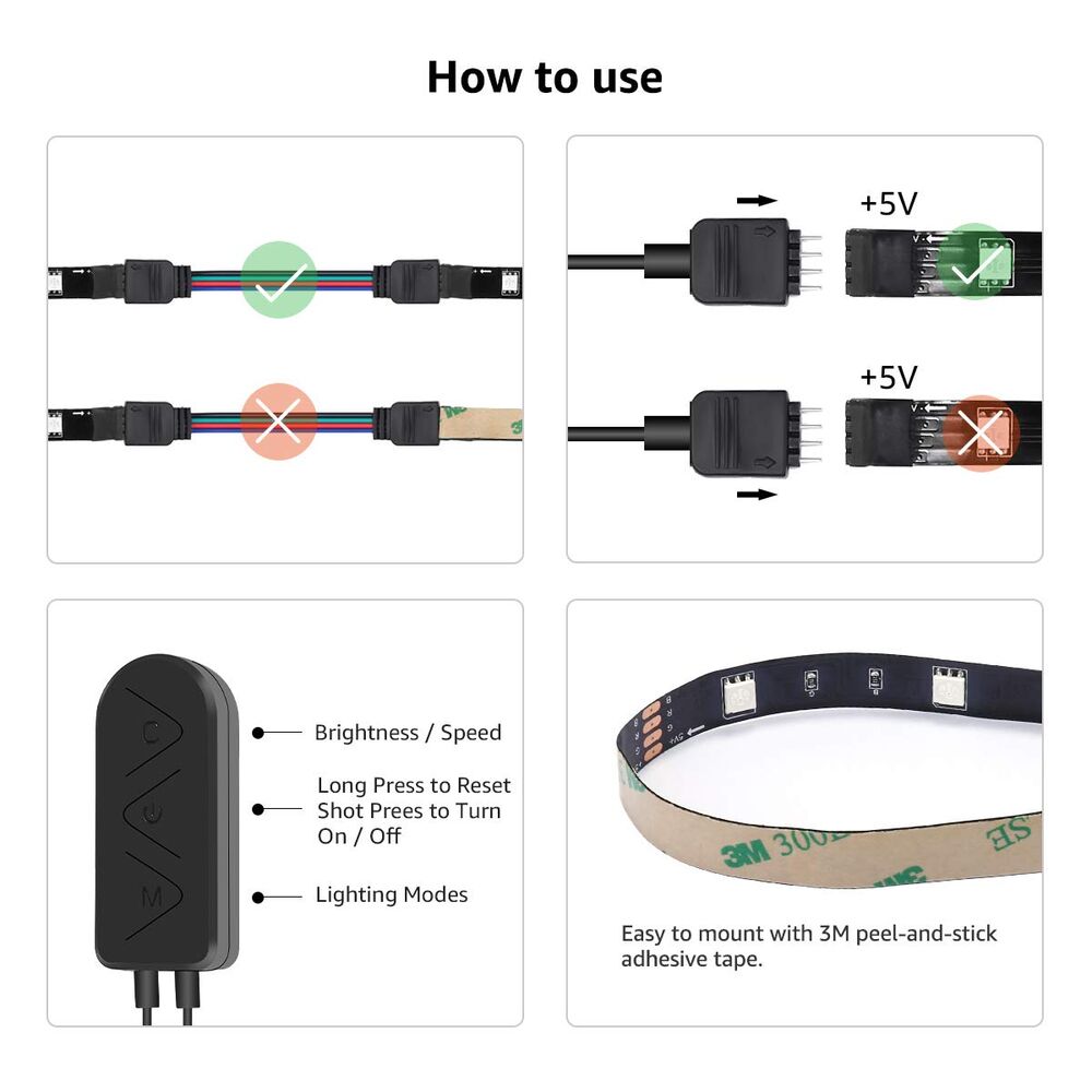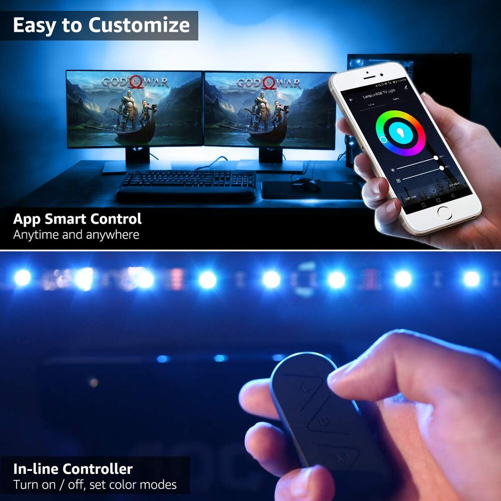 6.5 ft Smart Wifi RGB TV LED Strip Lights, Work with Alexa and Google Home, USB Included