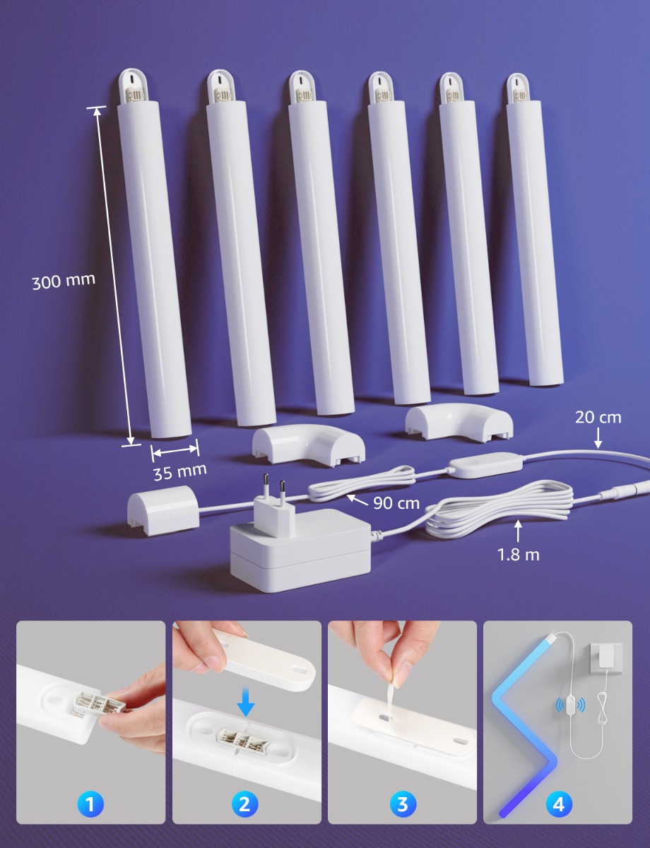 Personalize Your Wall Your Way: Our RGB wall light kit includes 6 wall light segments, 2 corners, 1 controller and 1 adapter. These corner lights have 2 different orientations, allowing for more flexibility and convenience in creating various shape combinations as desired. You can firmly install the wall lights by sticking the adhesive to any dry, clean surface in your home.
