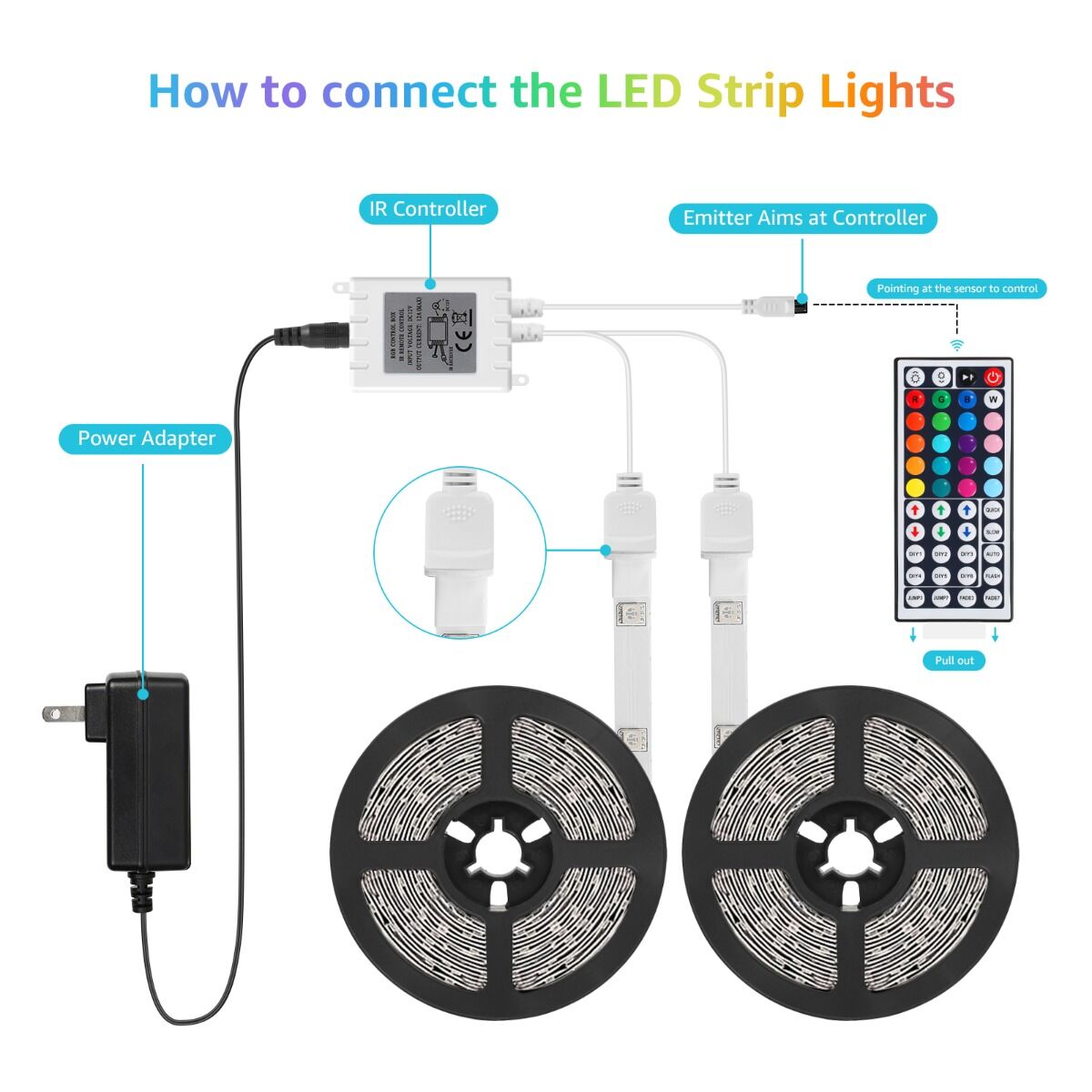 Our LED strip lights have great flexibility, bending and folding at your command. Cut your LED tape between every 3 LEDs for the perfect length. Use LED lights strips to create the perfect mood lighting and decorate your home in color. Please note: When cutting the LED lights strip, only the section remaining connected to the controller will function properly.