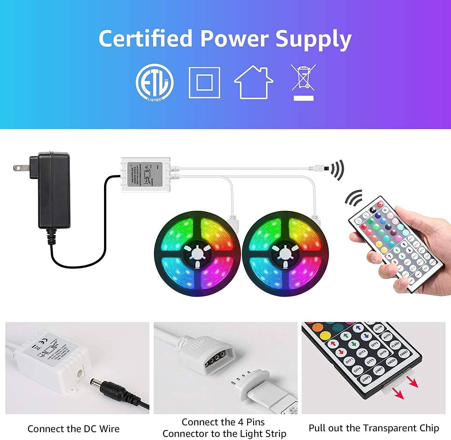 65.6ft (32.8ft*2) RGB LED Strip Lights, Ultra-Long Color Changing LED Tape Light with Fixing Clips and 12V ETL Listed Adapter for Bedroom, Living Room, Dining Room, Kitchen and More