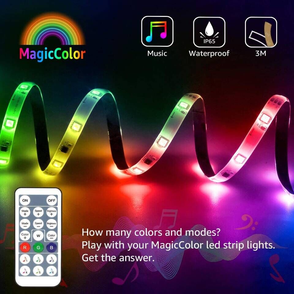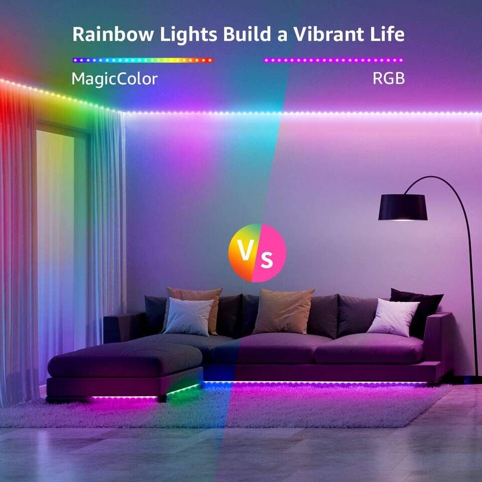 MagicColor Rainbow Effect: Different from regular RGB strip lights, MagicColor LED strip lights can display multiple colors at one time, like a rainbow, by adding IC in the light strip. You can choose among a variety of dynamic modes to create a beautiful rainbow chase effect.
