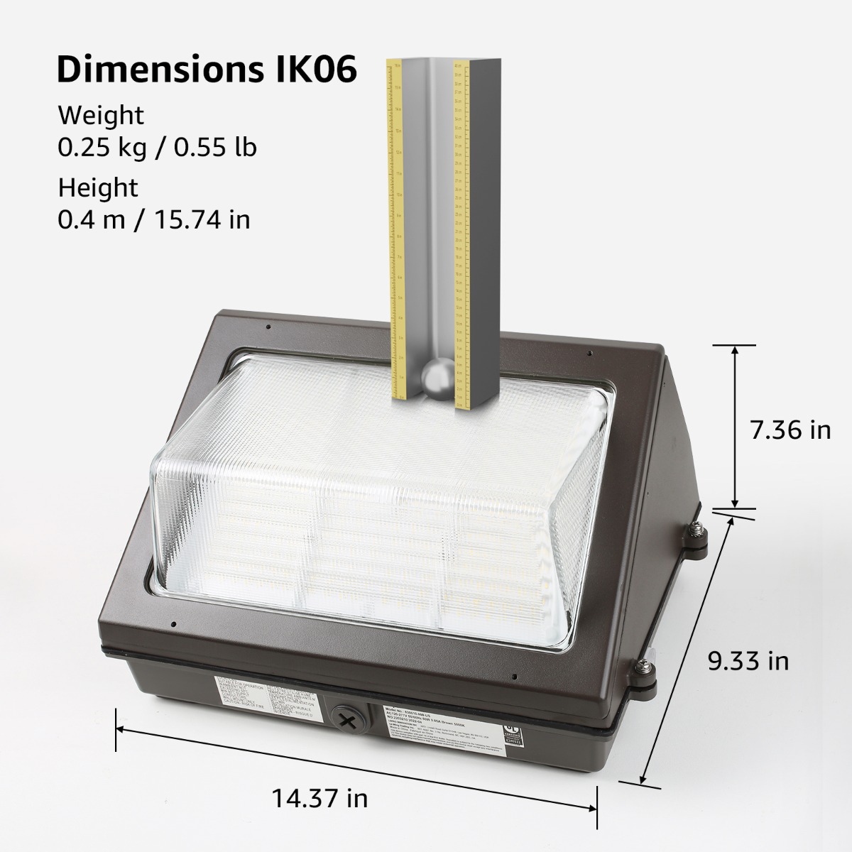 Durability: This outdoor waterproof 80w LED wall lights has a 5-year warranty and a long lifespan. They are made of die-cast aluminum with a commercial-grade powder-coated bronze finish, impact-resistant tempered glass, and a maintenance-free LED. With a lifespan of up to 50,000 hours, they can potentially work for more than 17 years if they put in 8 hours a day. Additionally, we offer a 5-year warranty.
