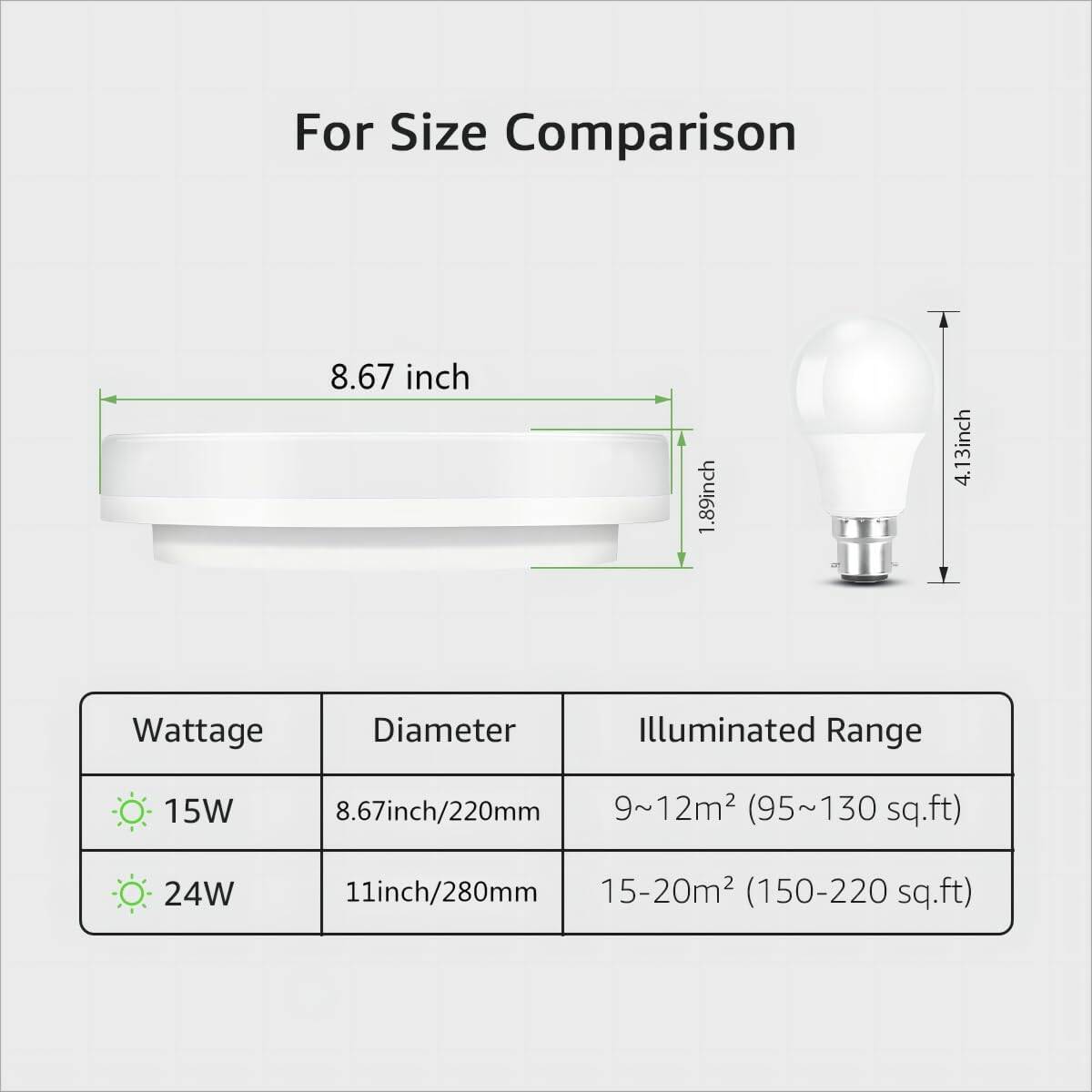 Large Illumination Range & 1500 Lumen & CRI>80: With the power of 15W, Lepro ceiling light fixture can illuminate an area of 9~12㎡ (95~130 sq.ft). At the same time, the color rendering of things under the light is above 80, which is good for showing the original color of things.