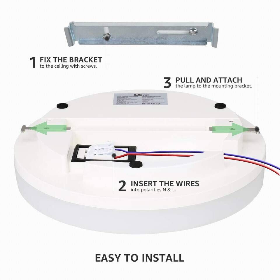 Lepro 8.7 inch 15W Flush Mount LED Ceiling Light Fixture for Bathroom Waterproof Soft Warm White 3000K 1250lm 120W Equivalent Ceiling Lamp for Kitchen, Laundry, Bedroom, Hallway, Closet Non Dimmable
