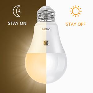 - These sensitive light bulbs will turn on when it gets dark (<15Lux) and automatically turn off again in the morning (>65Lux). No timer or scheduling is required.