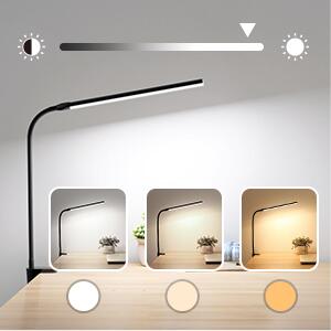 Lepro Clip on Desk Lamp LED Reading light Dimmable USB Clamp Lamp with 3 Color Modes 10 Brightness, Adjustable Flexible Gooseneck Table Light for Bed Headboard, Workbench, Home Office, Computer, Black