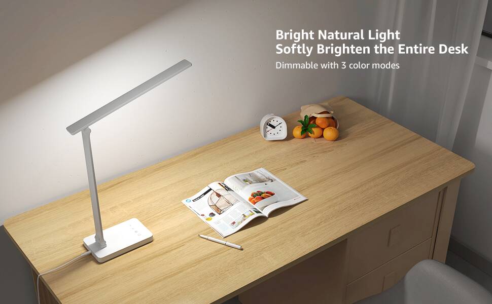 - Versatile adjustable desk lamp. Allows customizing the lighting to the ideal level whether working on a computer, reading a book, studying, or completing another task