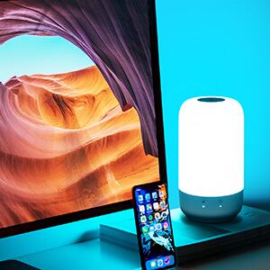 Touch Control Simplicity. A plug-and-play accent lamp. Simply touch to turn on/off, select your preferred shade of white light, choose colors, adjust brightness, and control the color changing speed.