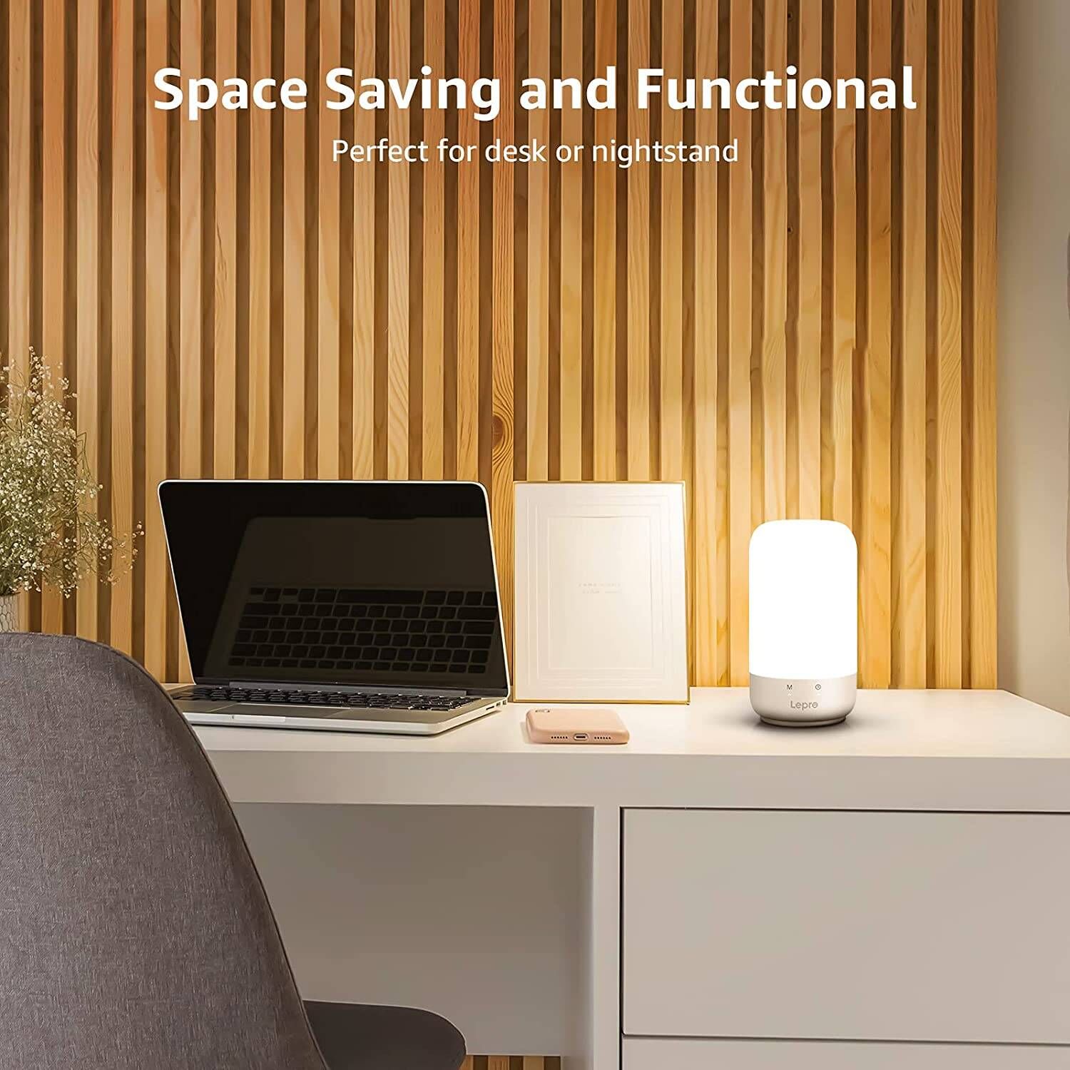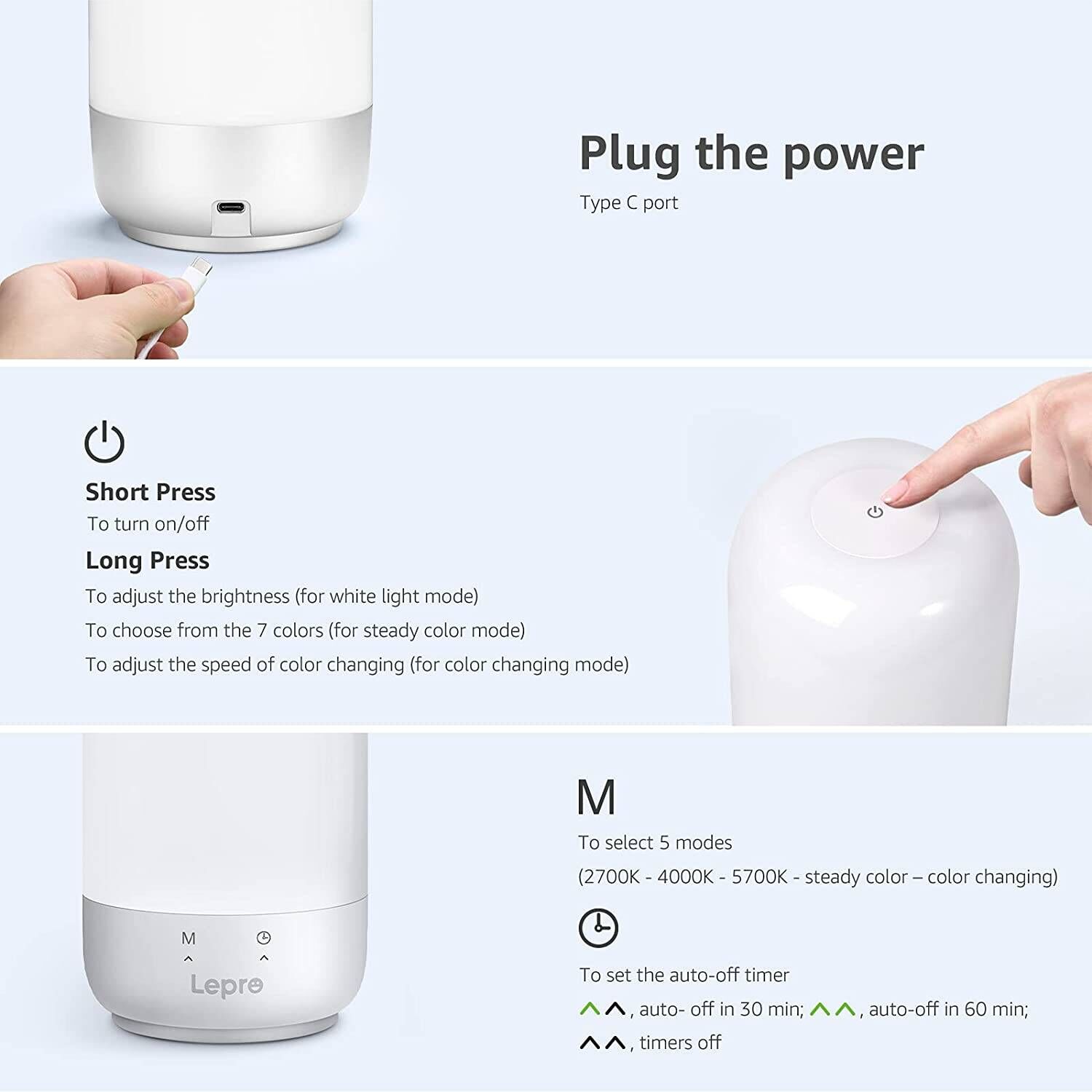 Lepro Table Lamp, Color Changing LED Touch Lamp for Bedroom, RGB and Tunable White 2700K-5700K, 350lm, Dimmable Bedside nursery Night Light with Auto-off Timer, Soft Warm White Mood Lighting, Silver