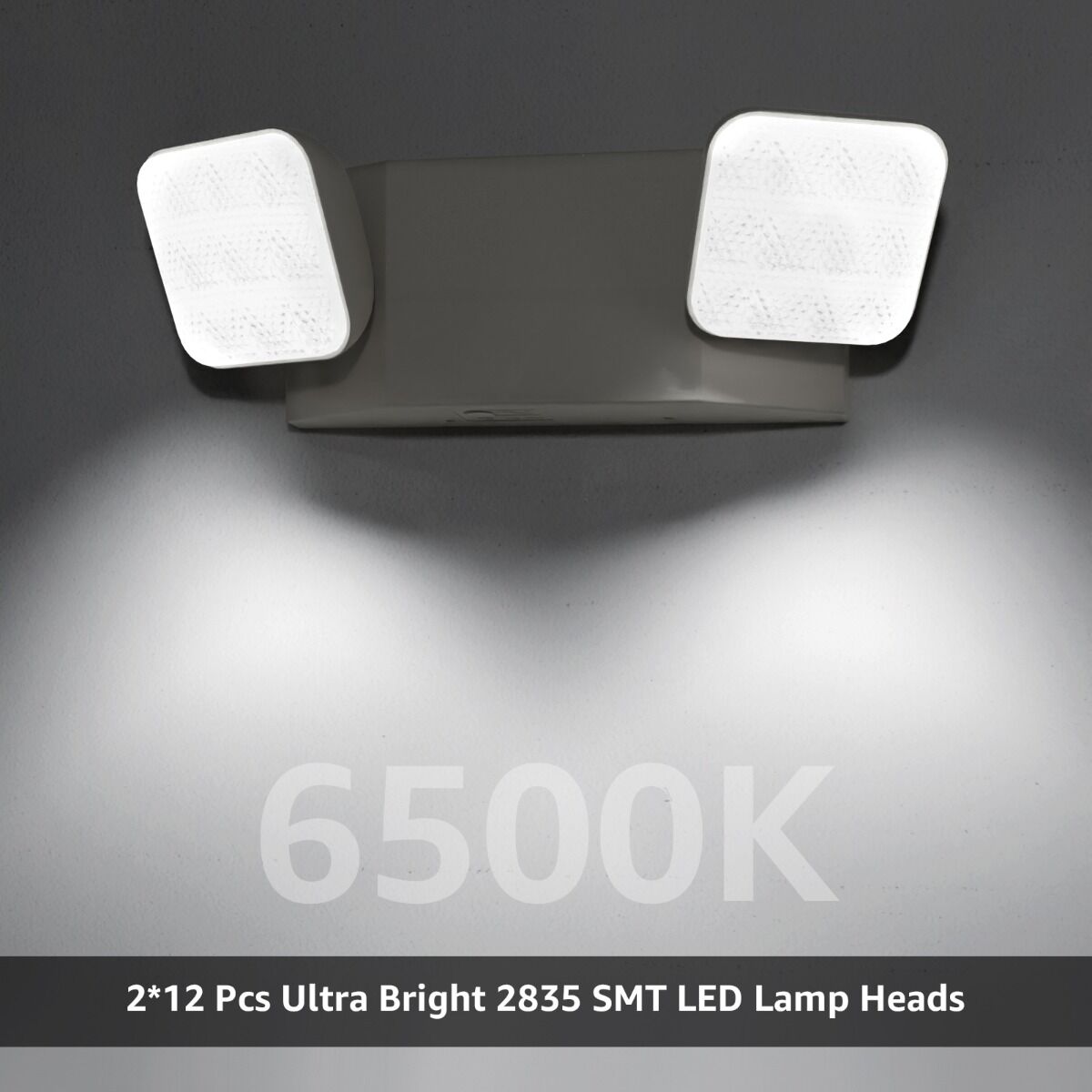 Dual-Head LED Emergency Light for Hospital, School, Church| 90+ Minutes Battery Backup| White Housing | Square Head. FCC Listed | 3 Years Warranty