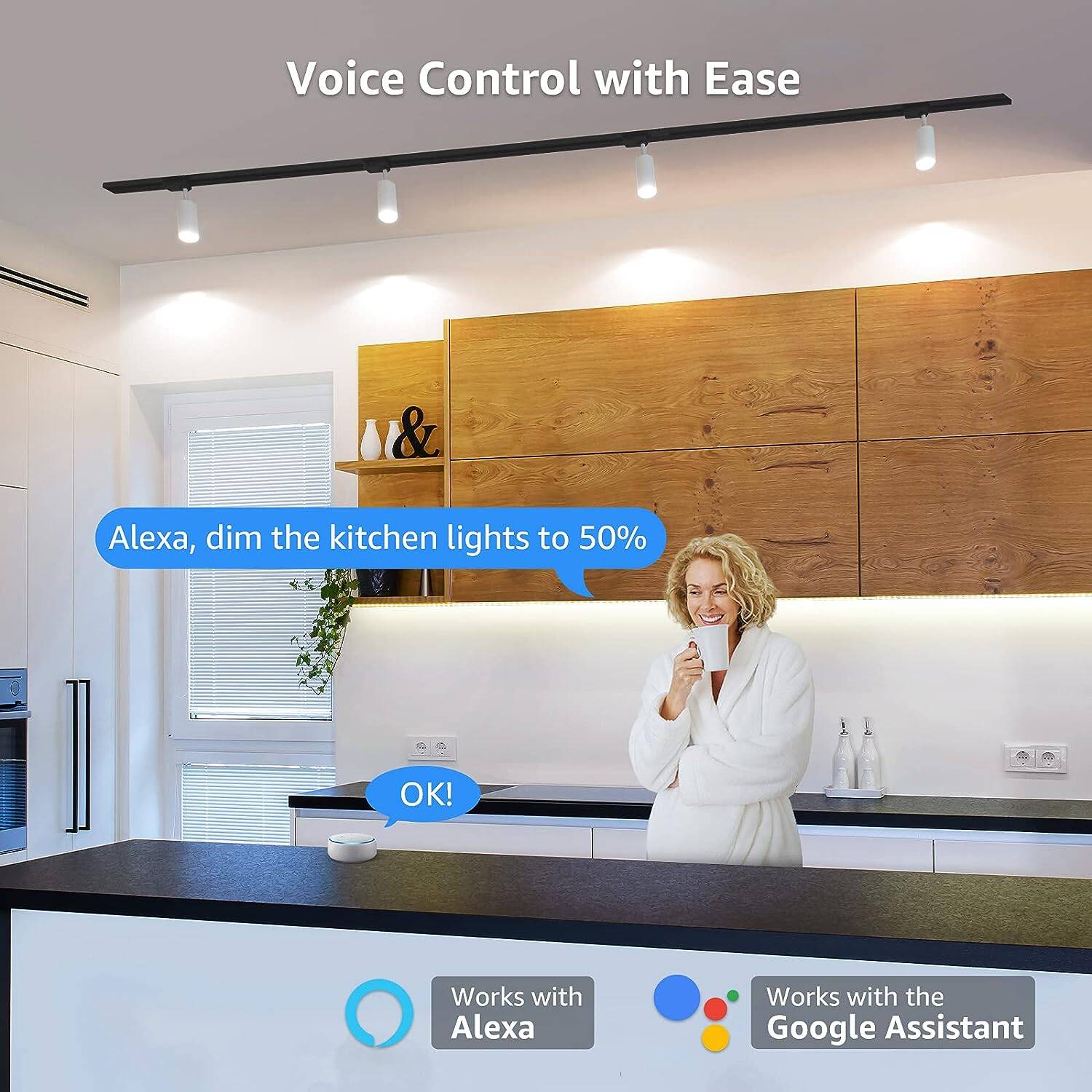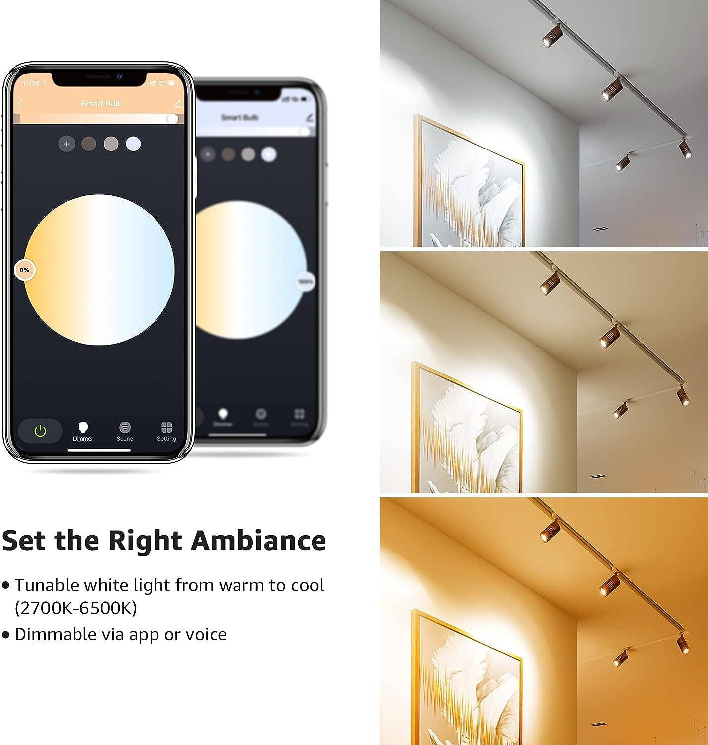 Tunable White Light from Soft to Daylight: No more wrong color. You can choose any shade of white light from warm to cool (2700-6500K), and set all of your smart bulbs in track lighting fixture to be the same color temperature.