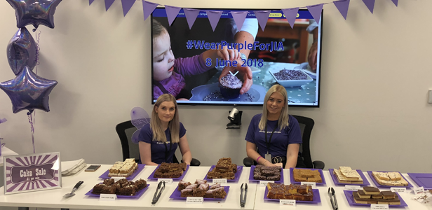 Sobi support #WearPurpleforJIA08 June 2018 Today (8th June 2018), as part of its commitment to supporting people with rare diseases, Cambridgeshire-based speciality healthcare company Sobi UK and Republic of Ireland (RoI) held a purple-themed fundraising funfair event in support of the juvenile idiopathic arthirits (JIA) awareness day ‘Wear Purple for JIA’. The event raised £352.62, which was tripled by Sobi UK and RoI, bringing the total amount donated to £1,057.86. ‘Wear Purple for JIA’ day is the annual fundraising and awareness-raising campaign from JIA at NRAS, the arm of the National Rheumatoid Arthritis Society (NRAS) specifically dedicated to helping those affected by JIA. In line with the purple theme, visitors to Sobi’s offices in Granta Park were greeted by an eye-catching purple balloon archway. The balloons directed them inside, where they could make donations to participate in purple-themed games such as ‘purple hook-a-duck’, ‘blackcurrant pong’, guessing the number of purple sweets in a jar, purple hula hoop and throwing balls into purple buckets. Winners could claim purple-themed prizes, including purple wine. As well as the games, funds were also raised through a purple-themed cake sale, and ‘Wear Purple for JIA’ merchandise. Showing their dedication to raising awareness of JIA, the Sobi team were all dressed in #WearPurpleforJIA t-shirts and merchandise, and fairy wings. Anne Gilbert, Youth and Family Services Manager at NRAS said: “Although Juvenile Arthritis not a well-known condition, JIA is a debilitating disease which affects approximately 12,000 to 15,000 children and young people in the UK. It is great to see Sobi joining forces with our supporters across the country by taking part in ‘Wear Purple for JIA’ day, raising awareness of the condition and funds to help us continue to improve the information we provide and give support to all children with JIA and their families.” JIA is a form of inflammatory arthritis which starts in children under 16, but may continue into later life. It is unclear what causes it. There are seven different types of JIA, with a variety of different symptoms which can include joint pain, rashes or fevers. JIA is thought to affect approximately 1 in 1,000 children in the UK under the age of 16, with between 1,000 and 1,500 children diagnosed each year. Neil Dugdale, Sobi’s General Manager for the UK and RoI, said: “Sobi supports a wide range of charities who provide support for those affected by rare diseases, and we place patient value at the heart of what we do as a company. We are proud to be able to help JIA at NRAS continue their inspiring work by wearing purple to raise awareness of JIA, and by putting on our fundraising event.” Sobi specialises in innovative treatments for rare diseases, including systemic-onset juvenile idiopathic arthritis (SJIA), the rarest of the seven JIA sybtypes.2 Despite its rarity, SJIA has the highest mortality rate, reported to contribute approximately two thirds of the total mortality rate for JIA.