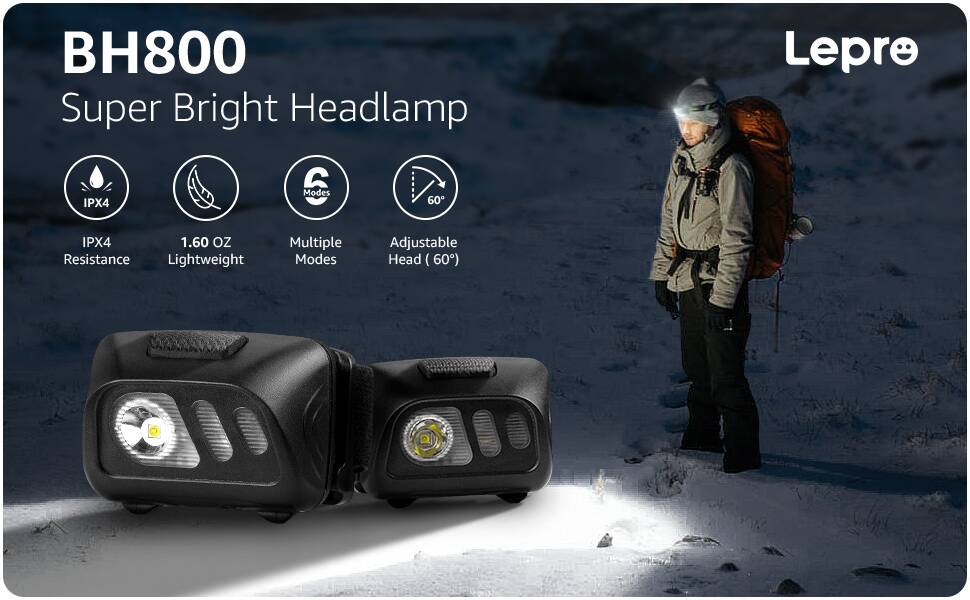 Super Bright & 6 Light Modes: Providing up to 1500 lux brightness with 3 levels of white light (High/Low/Strobe),floodlight mood and two modes of red light (stay on/flash).