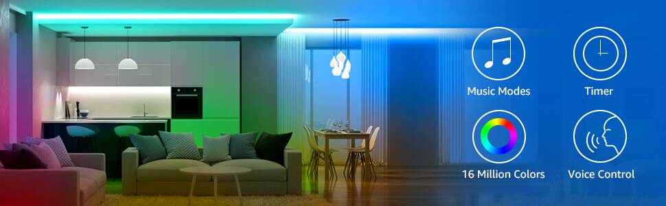 Sync with Music: With a built-in microphone, the light strip can sync with music coming out of any speaker in room.