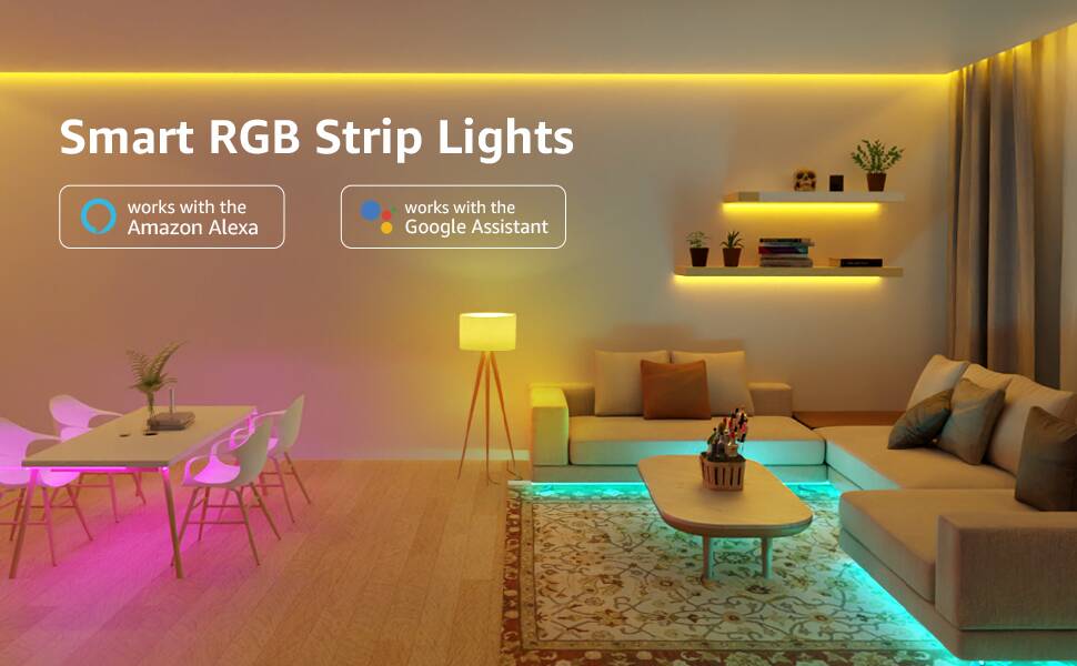 16.4ft Music Sync RGB Smart LED Strip Lights, Works with Alexa Google Home for Bedroom, Living Room, Kitchen, Mirror, Ceiling
