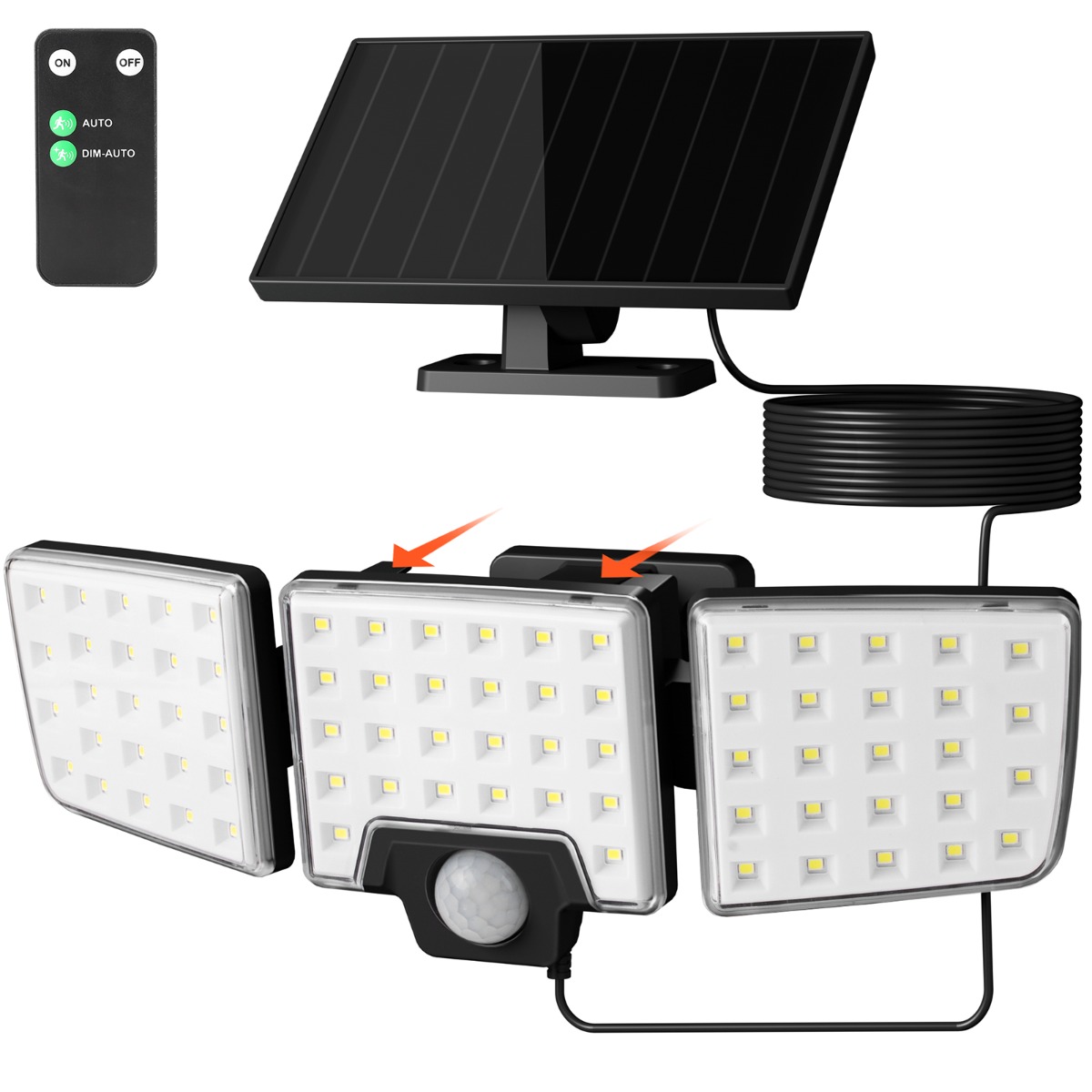 Lepro Solar Security Lights Outdoor Motion Sensor, 2 in 1 Separated and Integrated Remote Control IP65 Waterproof Solar Lights with 2 Light Modes, 3 Heads Solar Floodlight for Garden Yard Garage