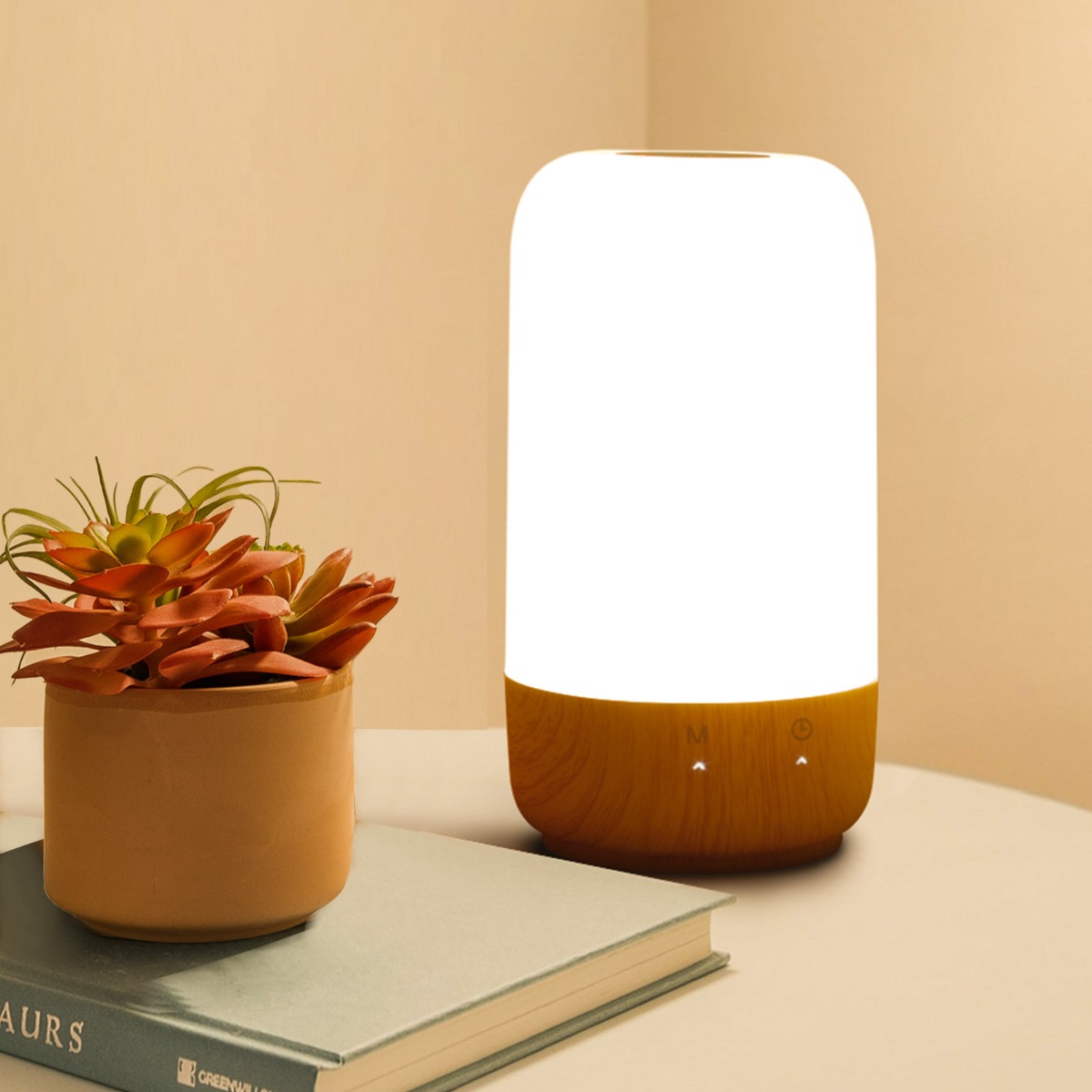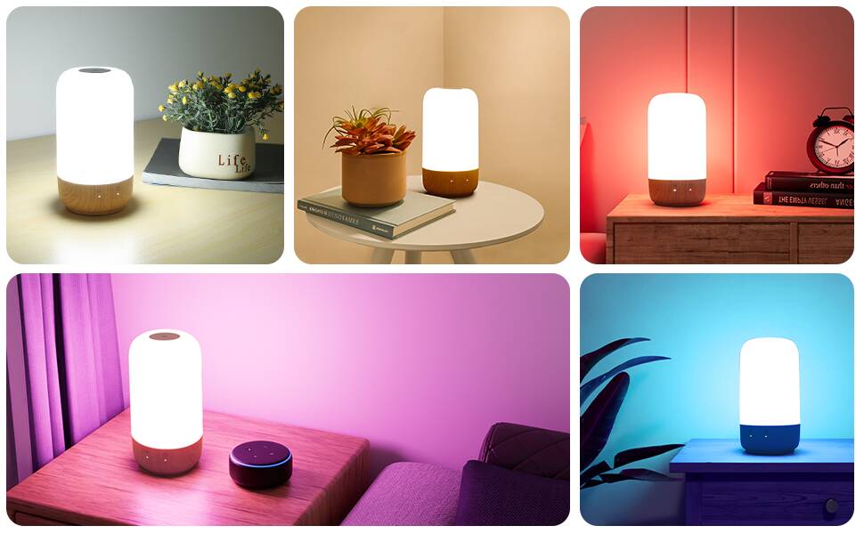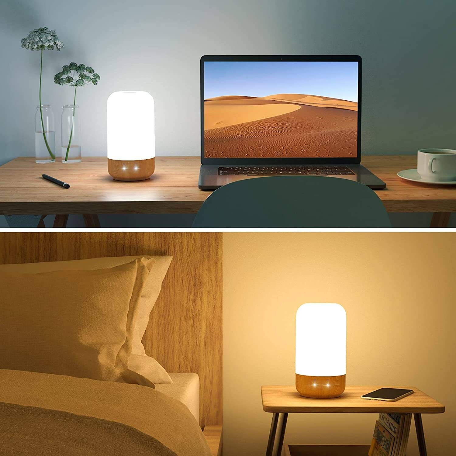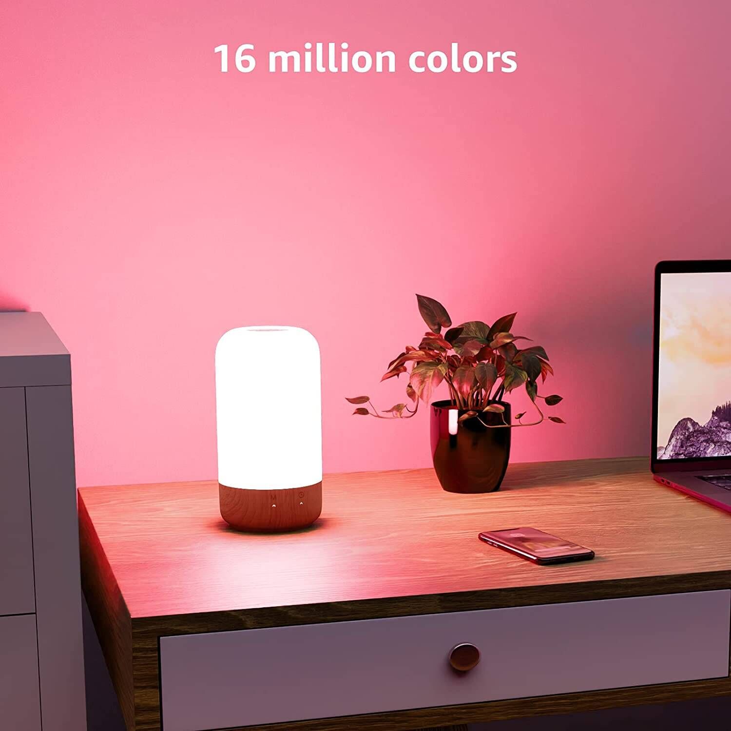 Lepro Table Lamp, Smart Lamp Compatible with Alexa and Google Assistant, RGB Color Changing Tunable Warm White Bedroom LED Touch Lamp, Dimmable Bedside Night Light, Wood Grain, 2.4 GHz WiFi Only